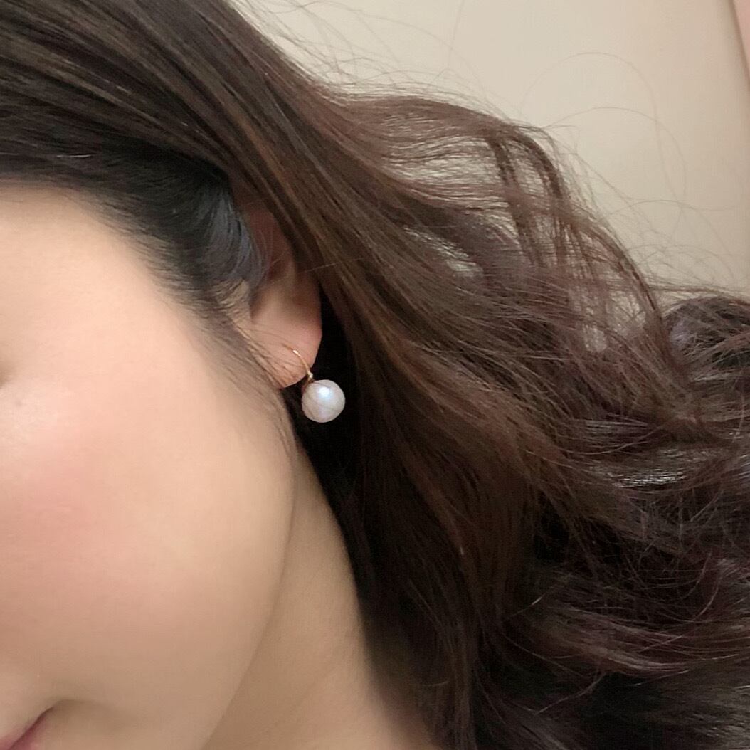 スワロフスキーのパールを使用したシンプルなフックピアス。
