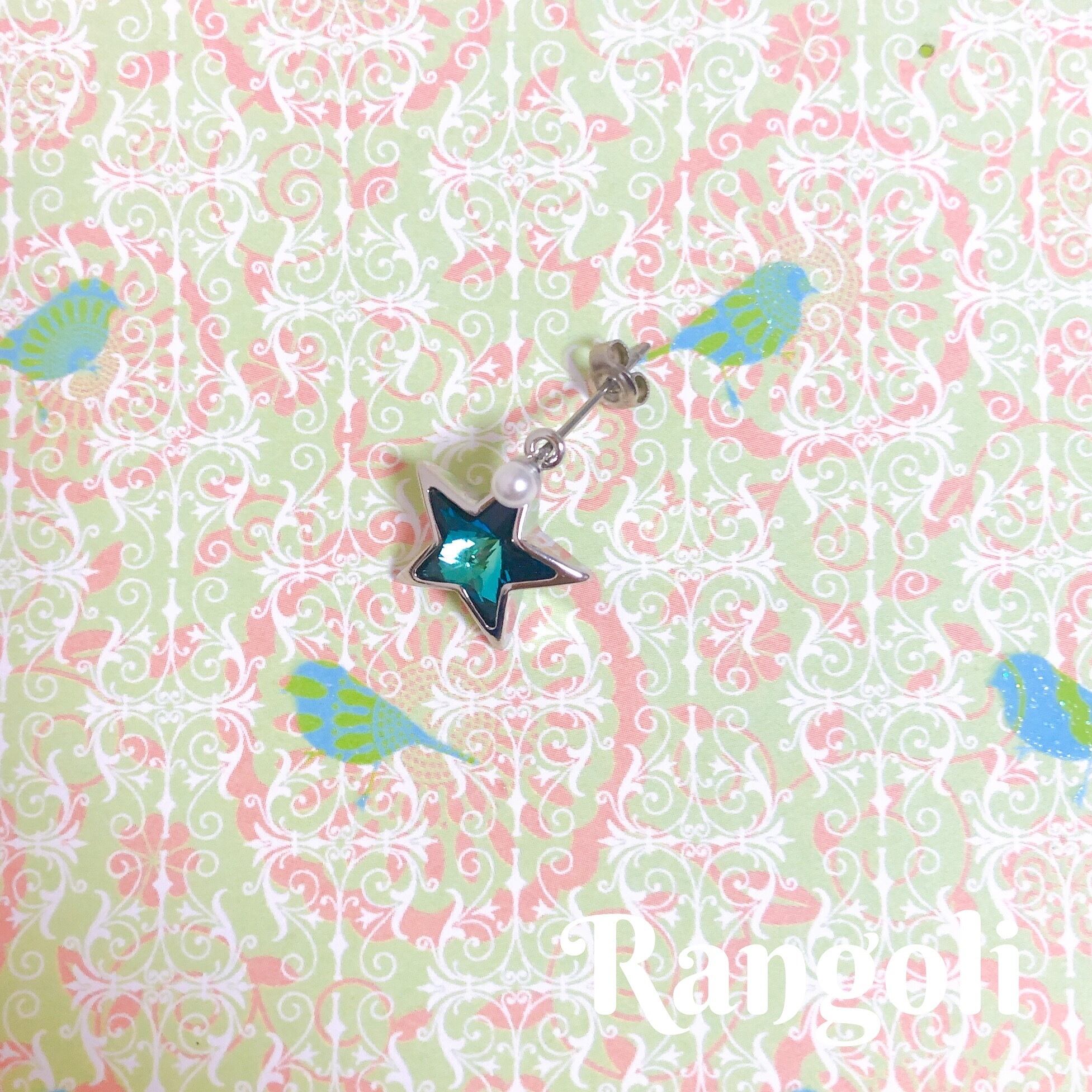 パール付きロングポストピアスに、スターモチーフのスワロフスキーをつけたシンプルなピアス。