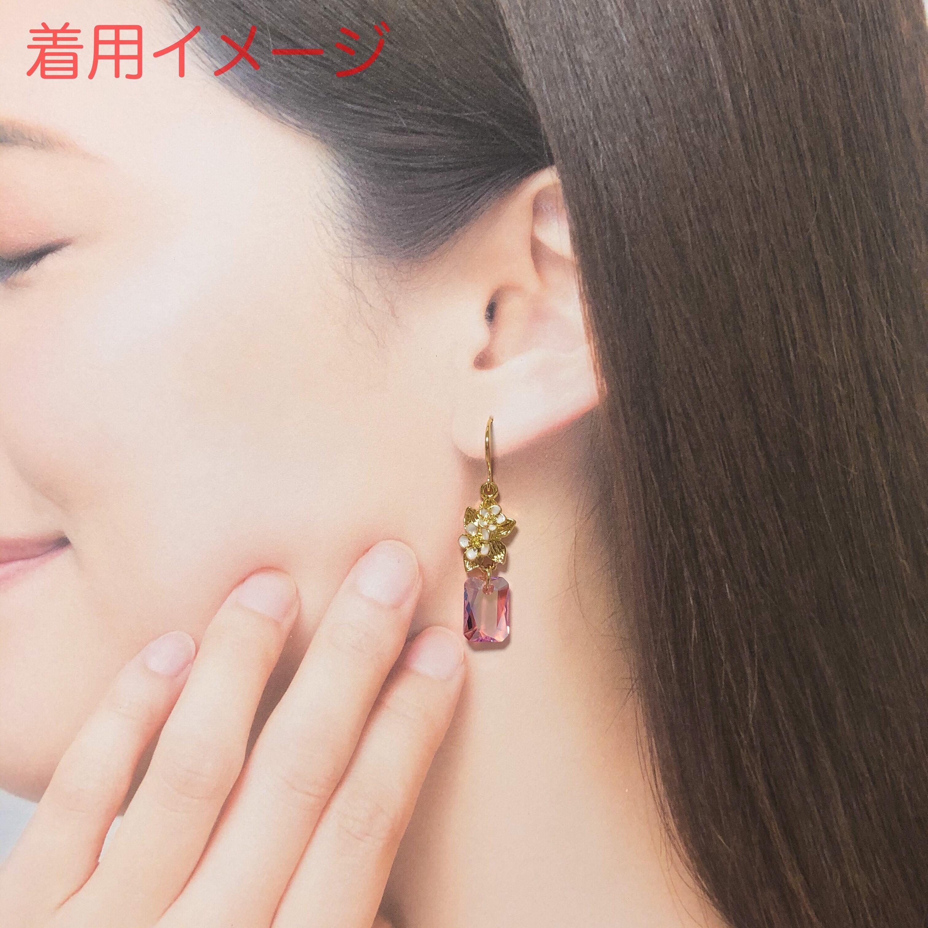 女神の光をイメージしたスワロフスキーに、可憐なお花のパーツを合わせたピアス。