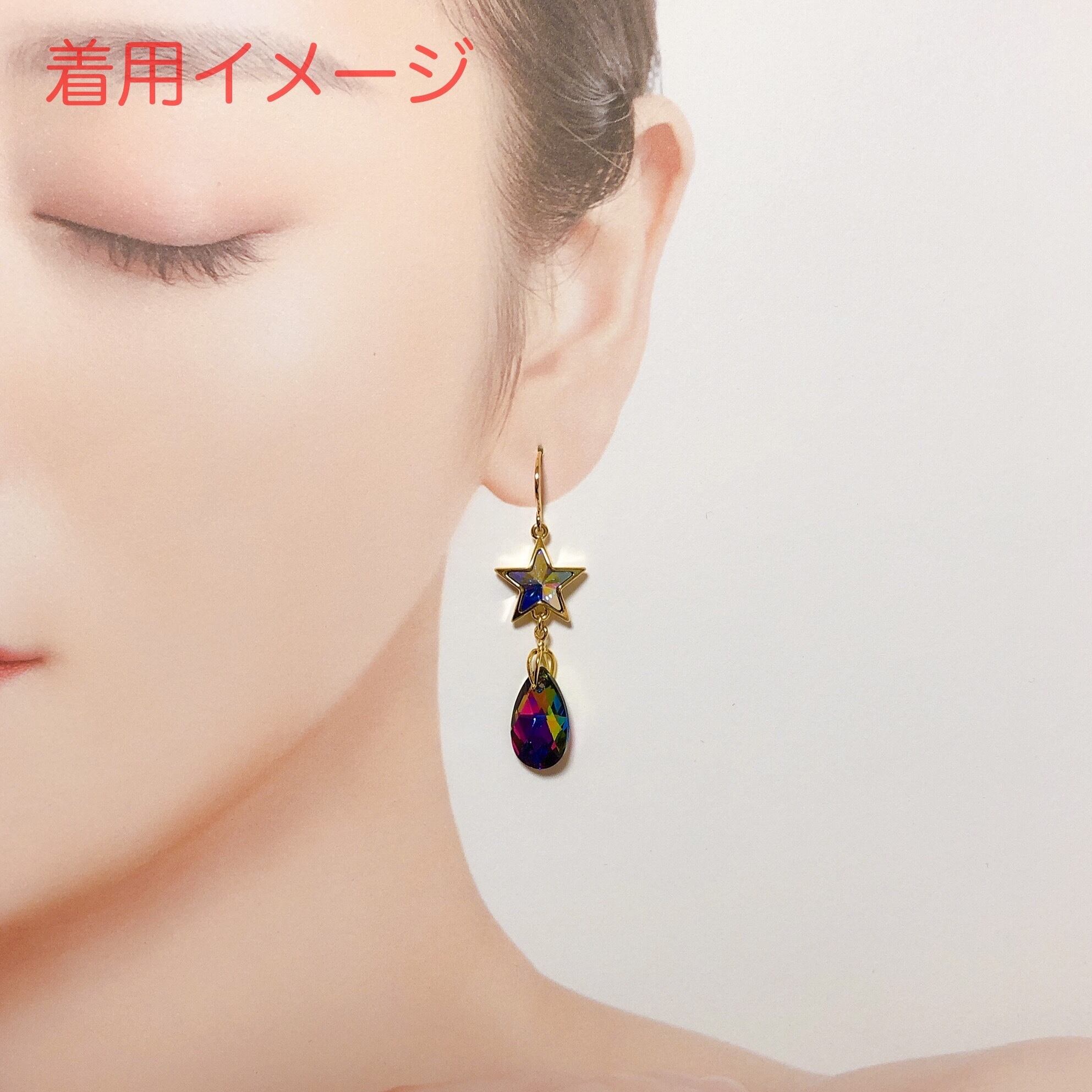 レアカラーのドロップ型スワロフスキーのピアス。イヤリング対応