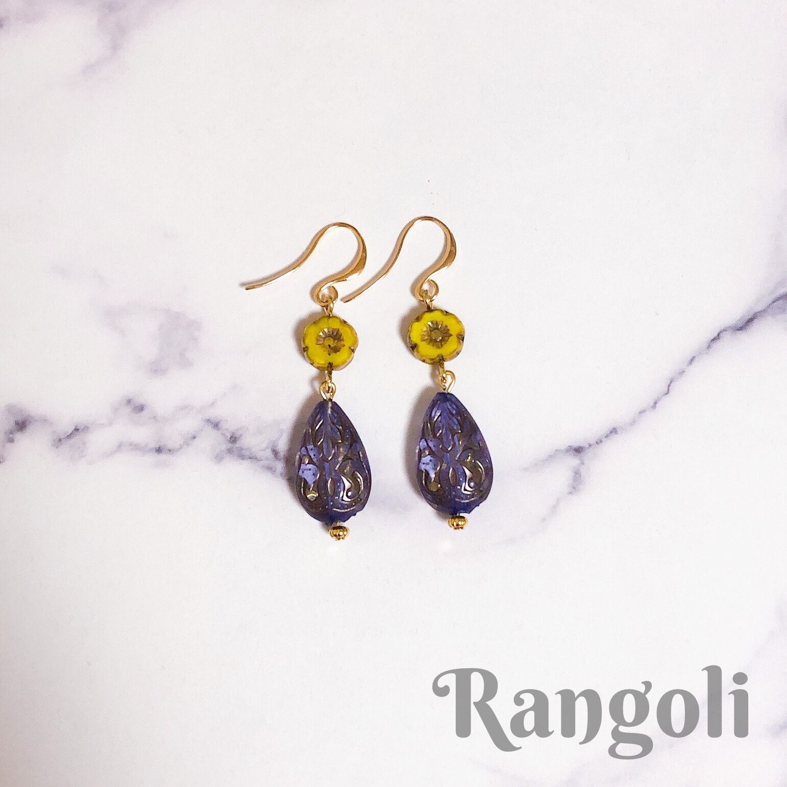 ビーズ染色家さんから買い付けたアンティークの手染めビーズを使用したピアス。