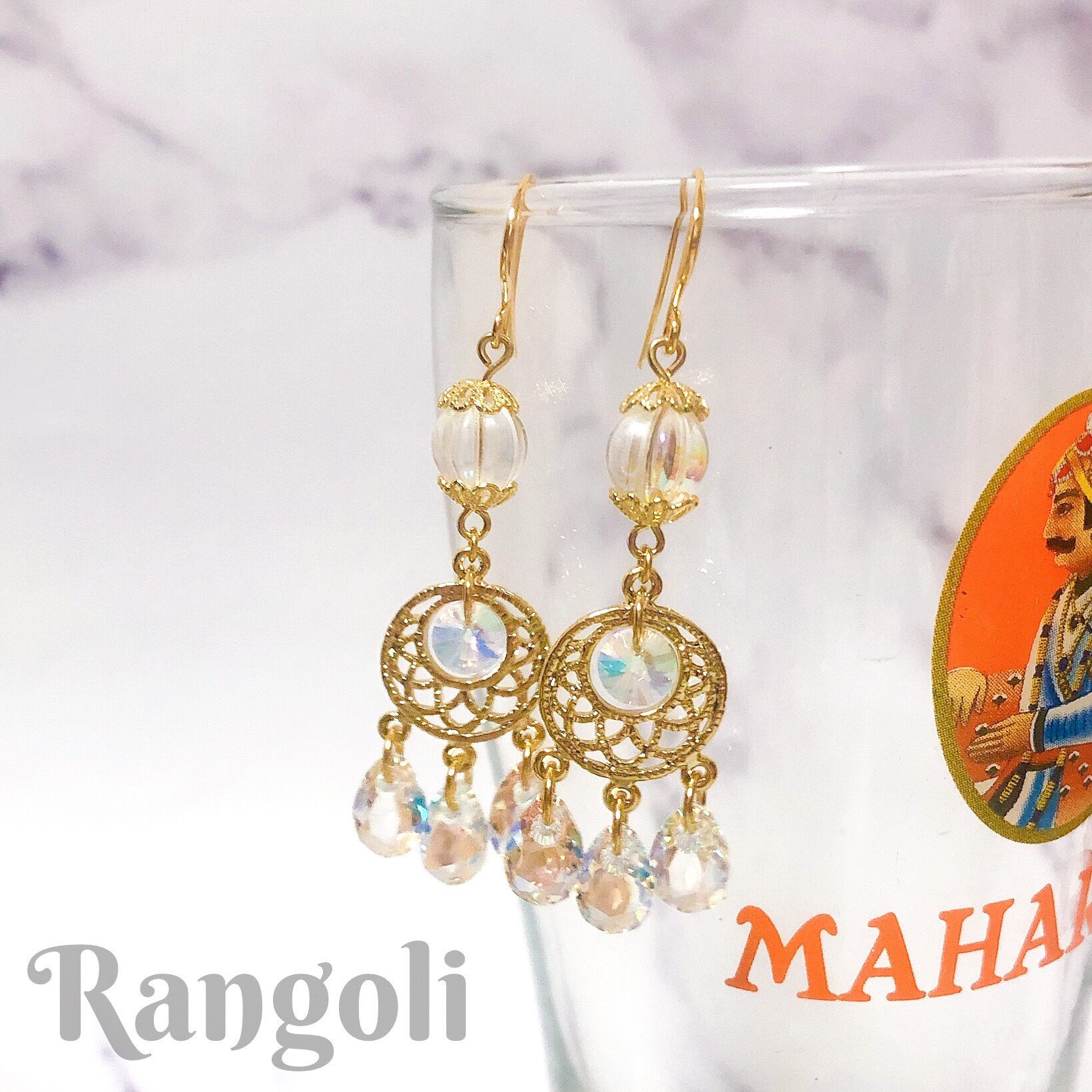 スワロフスキーをふんだんに使用した、シャンデリアデザインのピアス。イヤリング対応。
