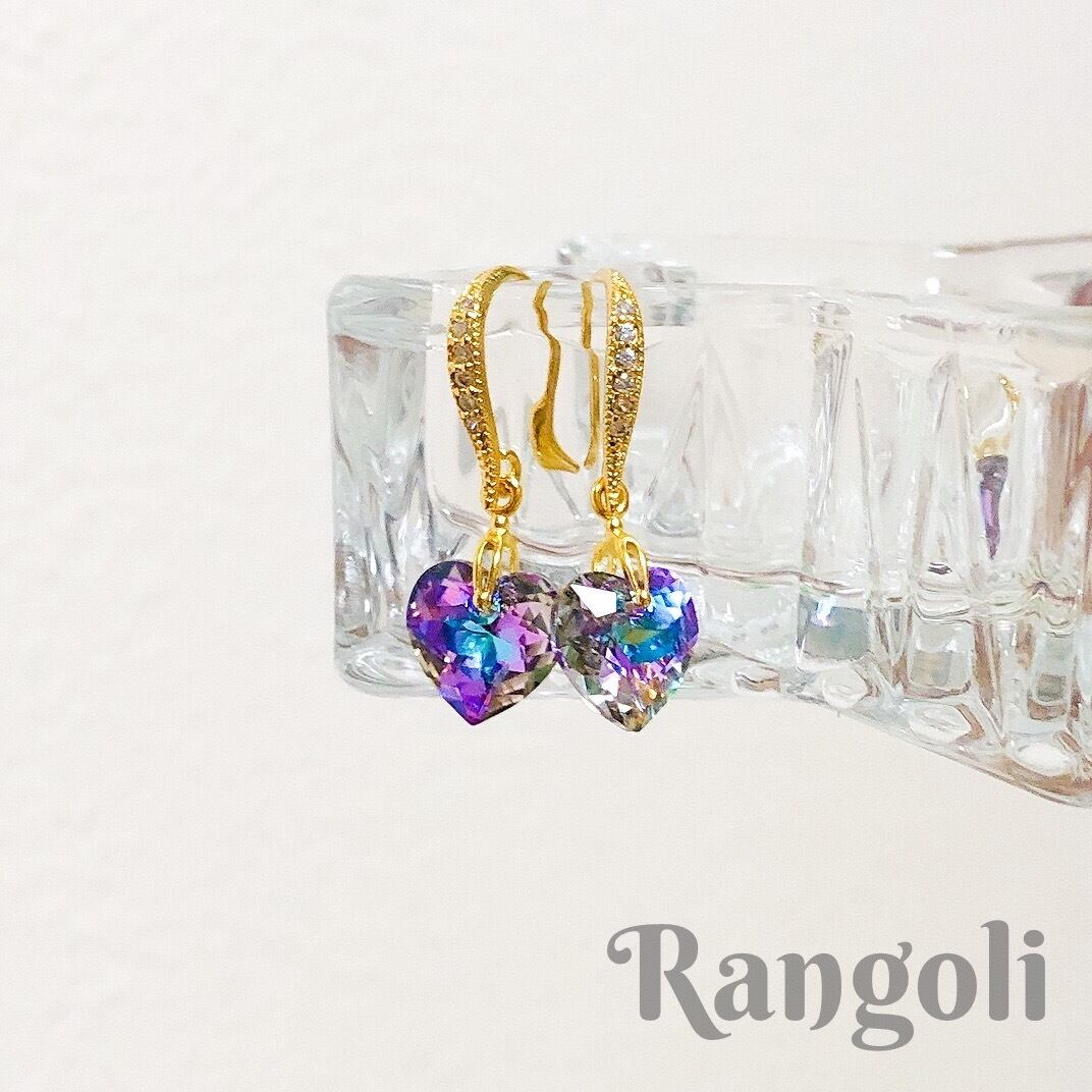 より煌めくカッティングのハート型スワロを使用したピアス。