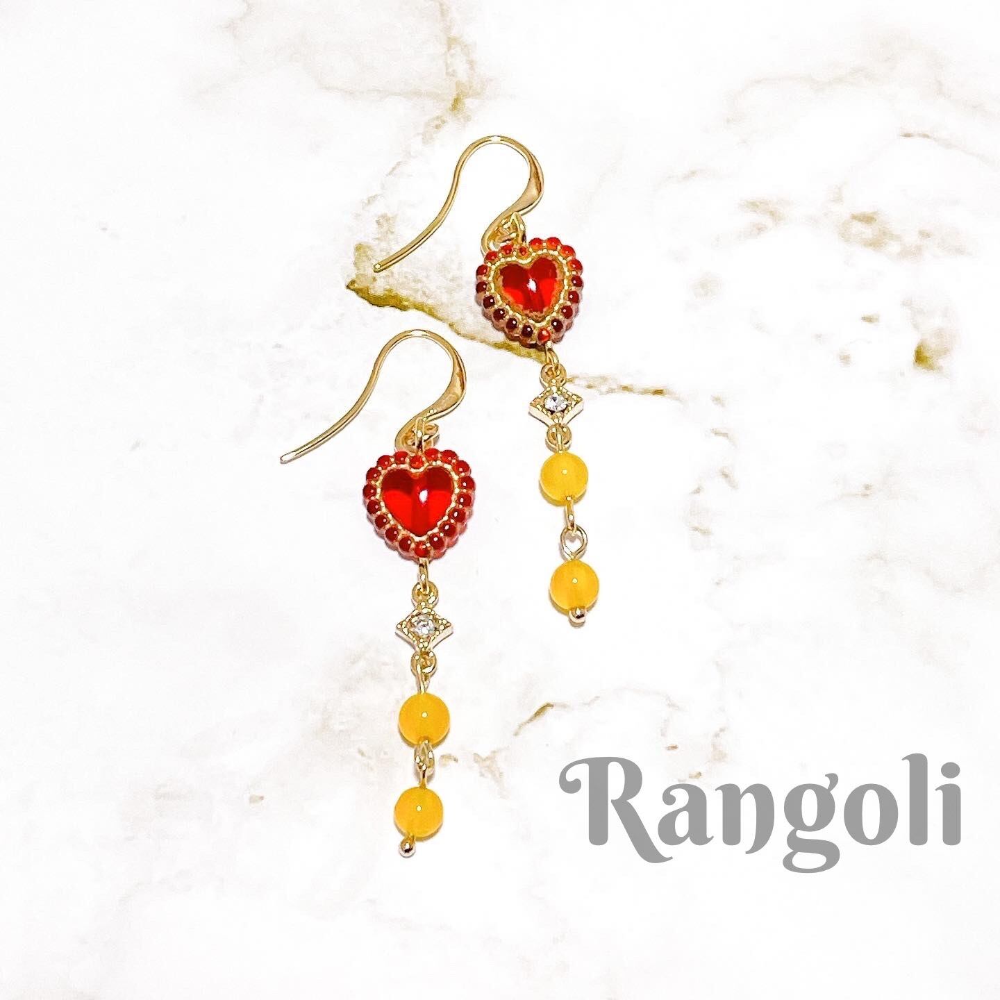 ハートの揺れるピアス(レッド&イエロー)