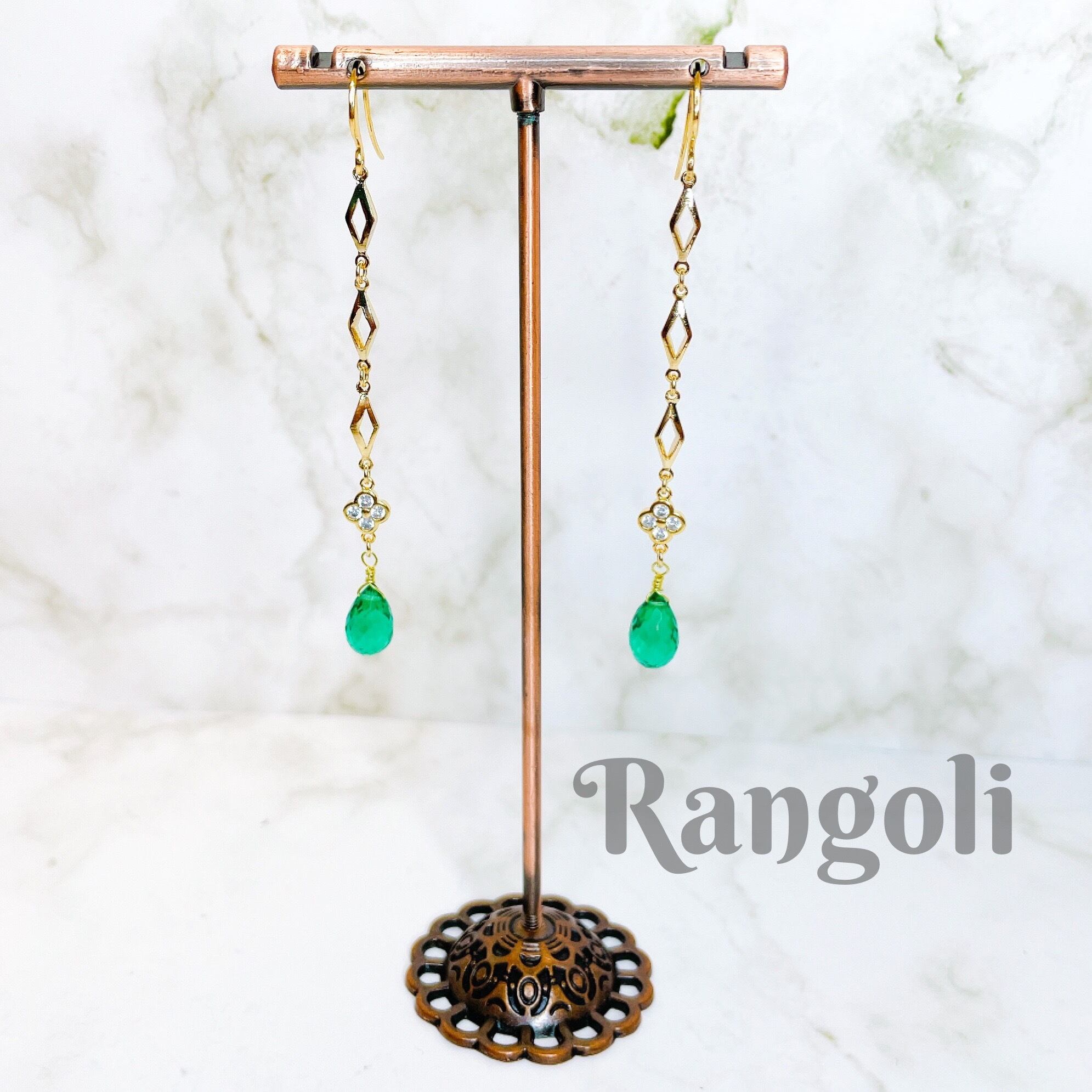 鮮やかなグリーンカラーのハイドロクォーツを使用したロングピアス。