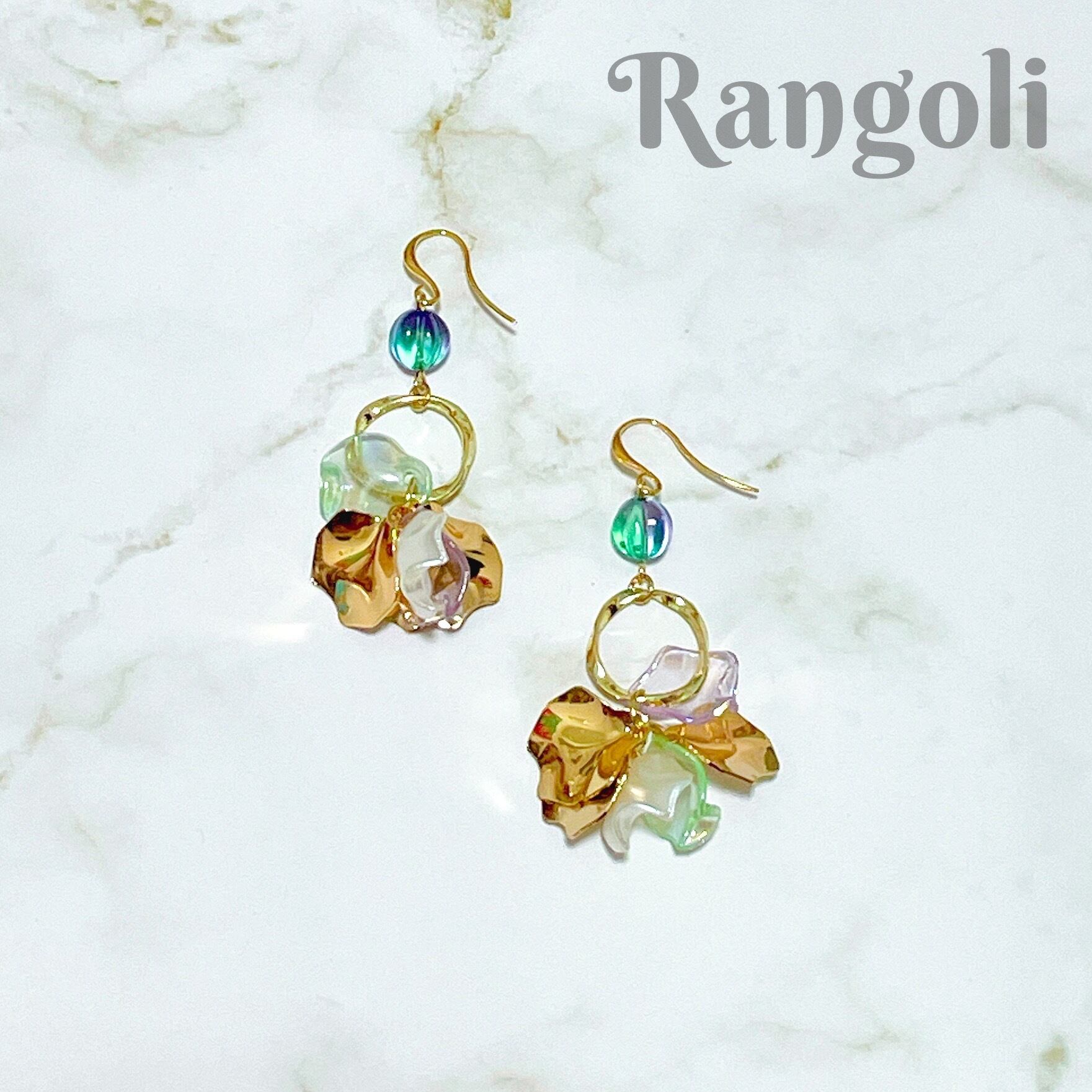 キラキラ花びらピアス(パープル×グリーン)