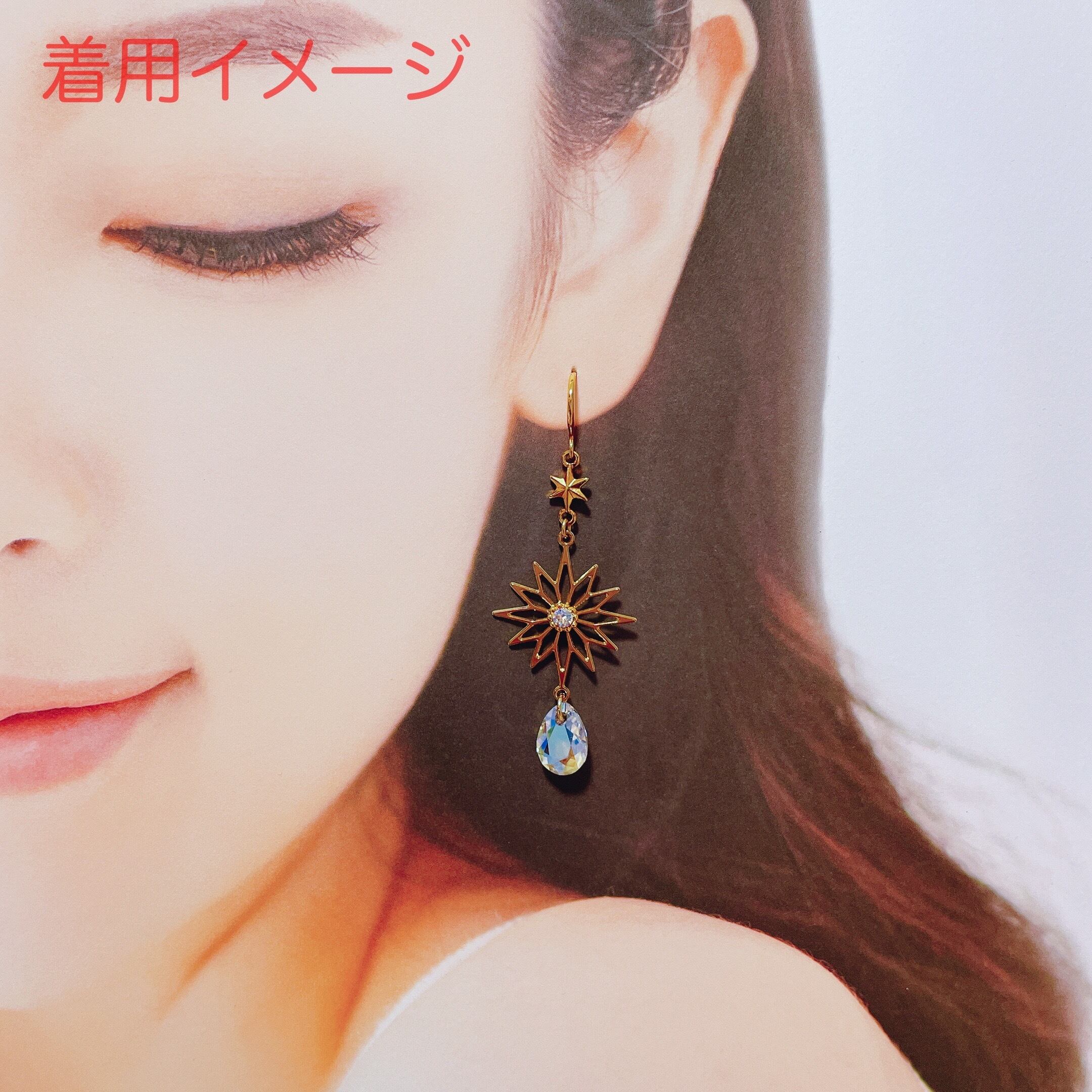大きめの光のモチーフとスワロフスキーの輝きの華やかなピアス。